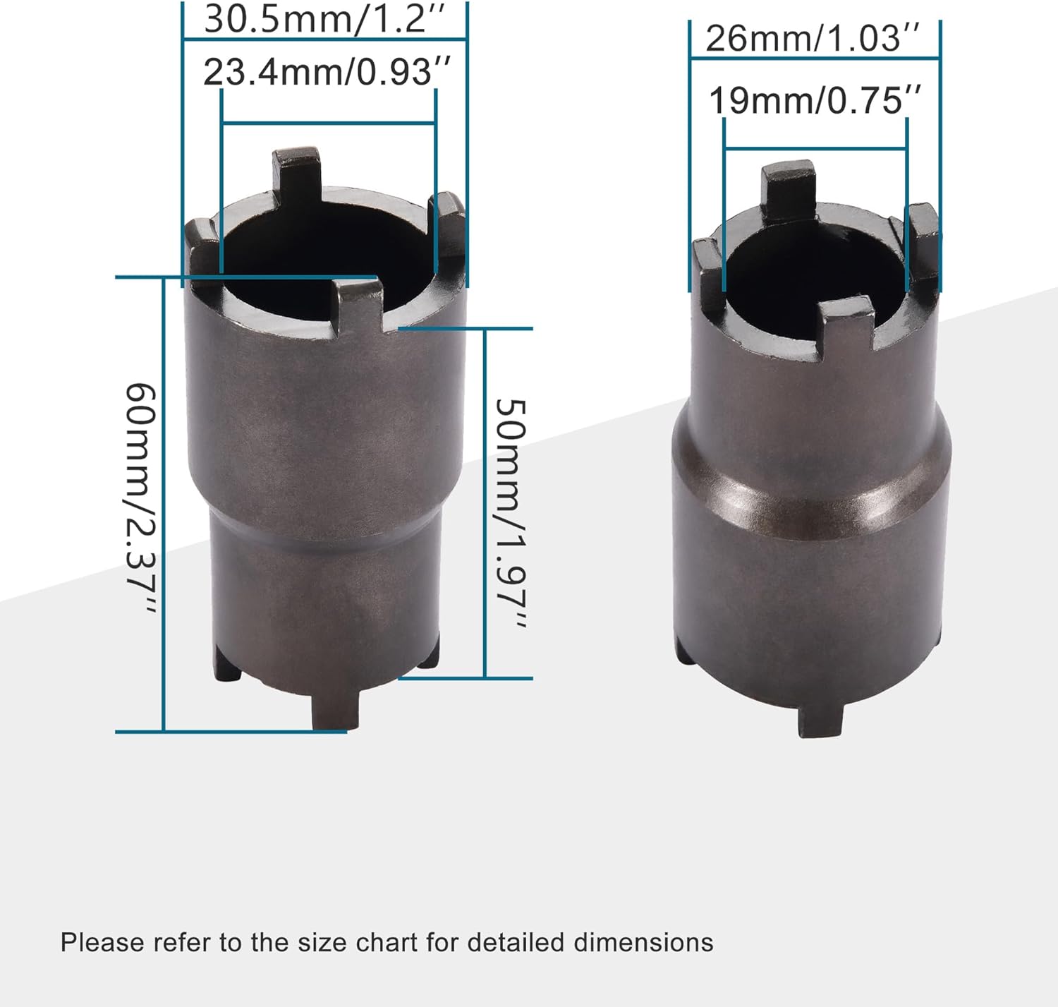 - Inner diameter(upper):19mm/0.74";inner diameter(under):23mm/0.90",total length:60mm/2.36",outer diameter(upper):26mm/1.02",outer diameter(under):31mm/1.22".