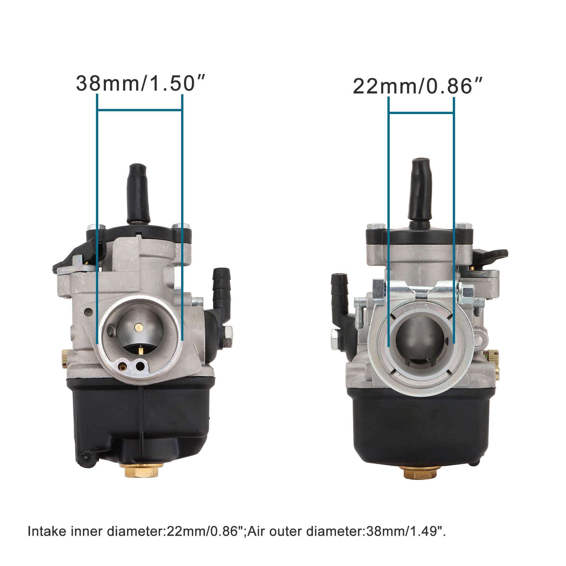 Intake inner diameter:22mm/0.86";air outer diameter:38mm/1.49".