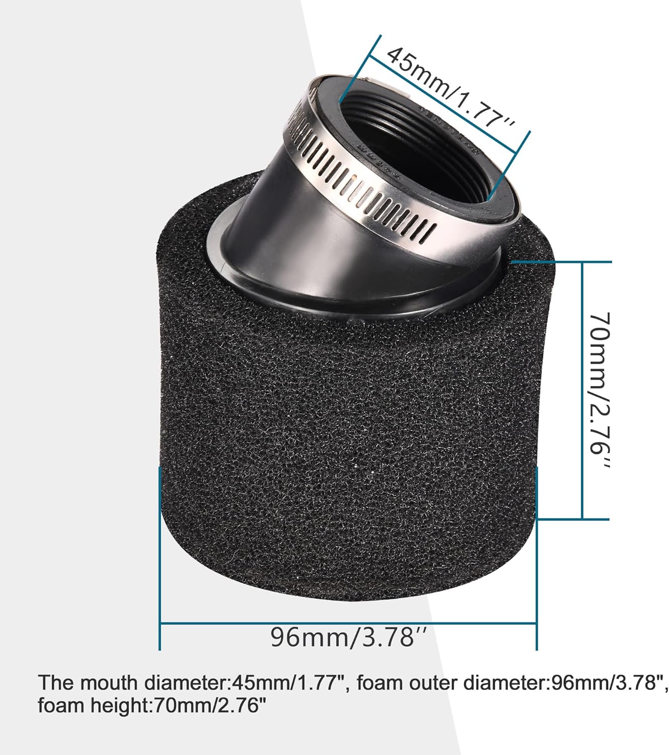 GOOFIT 45mm/1.77" Black Bent Angled Double Foam Pod Air Filter Cleaner Replacement for 50cc 90cc 110cc 125cc 140cc 150cc 200cc 250cc Pit Pro Quad Dirt Bike ATV Scooter Go Kart Moped Dune Buggy