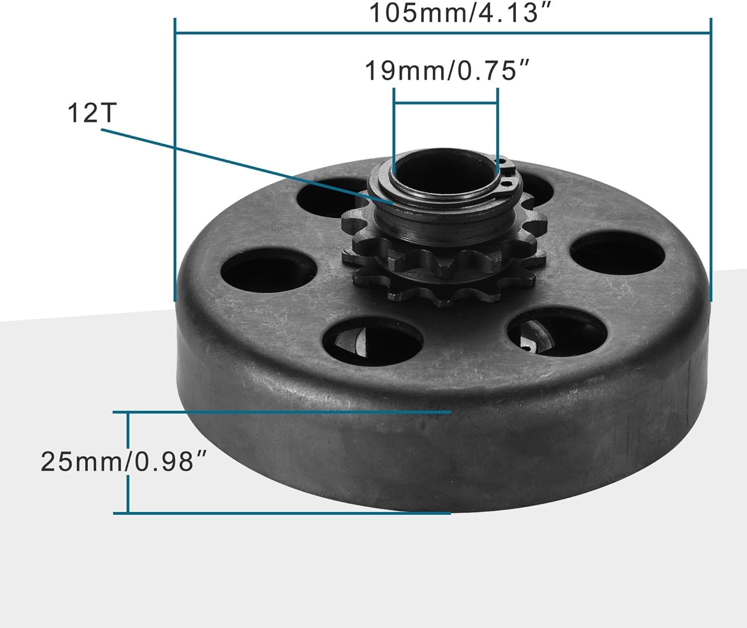 - 3/4" centrifugal clutch,12 Teeth,#35 Chain,Commonly used on Go karts, Go Kart, Minibike and Fun Kart,Mounts onto crankshaft using the bolt and washer on the end of the crankshaft